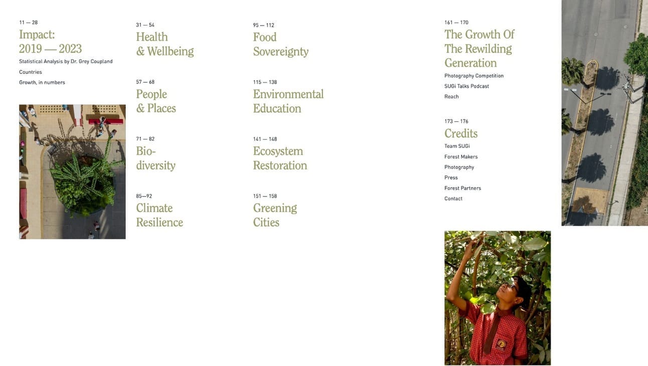 Sugi does a phenomenal job highlighting in their impact report how they make cities more habitable while reconnecting people to nature.